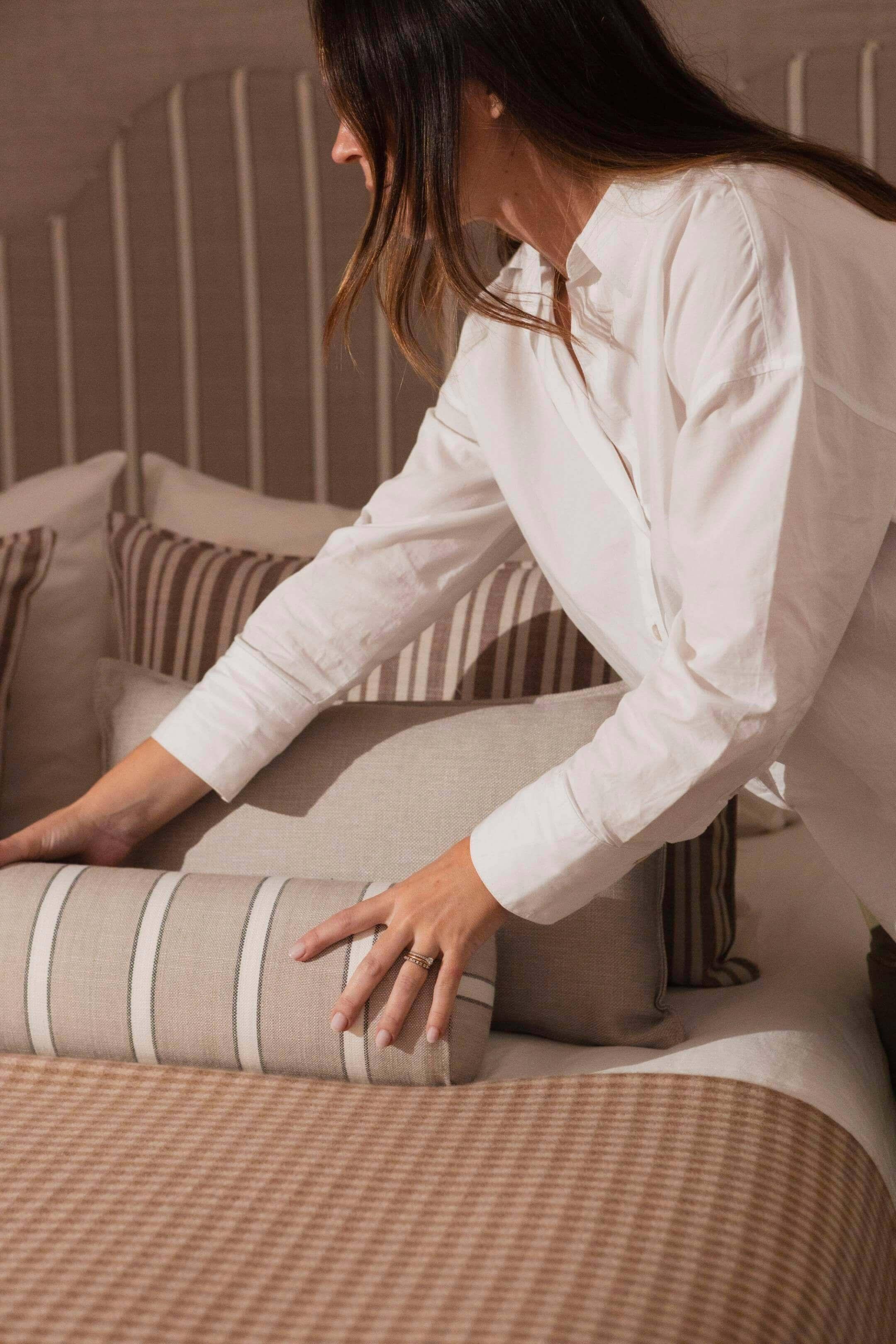 Los cojines son pequeños gestos que transforman el ambiente, aportando textura y comodidad con discreción. Sus tejidos, volúmenes equilibrados y acabados cuidados añaden interés sin recargar el espacio.